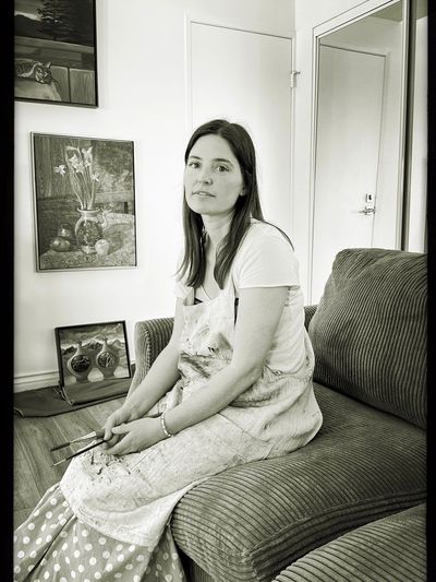 In 2018, prompted by motherhood during the Covid pandemic, Gironi began producing a significant body of work focusing on still-lifes and interiors, exploring the transient nature of 'home' through her experiences of frequent moves and bilingualism.